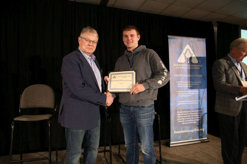 Each February, the Agribusiness Association of Iowa (AAI) Foundation hosts over 250 Iowa community college agriculture/agribusiness students at the Iowa State Fairgrounds. On February 12, 2020, Ellsworth’s Brant Friest, a second-year Farm Management major from Hubbard, was awarded a scholarship sponsored by Bayer Crop Science.